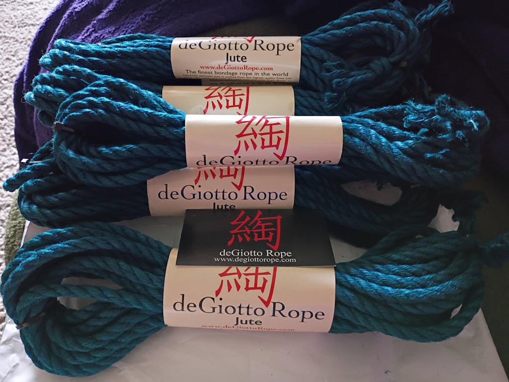 30 feet of premium 6mm jute bondage rope finished with overhand knots.